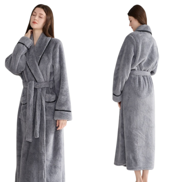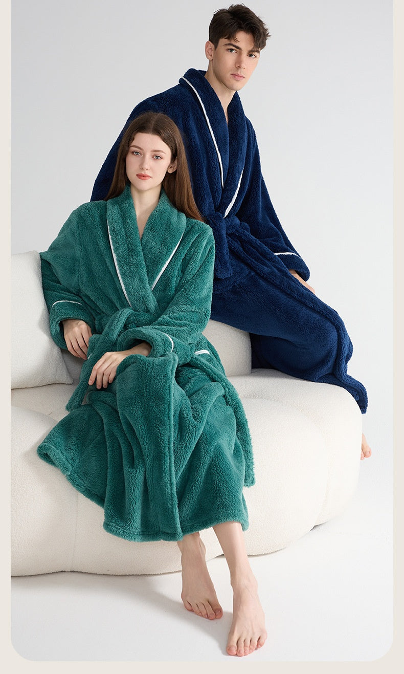 Appréciez le confort avec ce peignoir épais unisexe, conçu pour vous offrir chaleur et douceur lors de vos moments de détente. Profitez d'une sensation douillette à la maison tout en restant élégant.