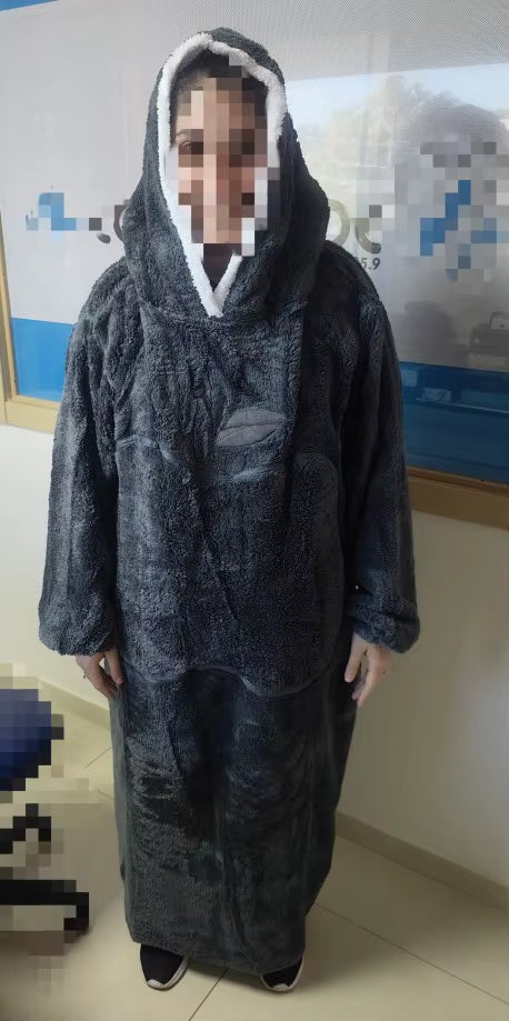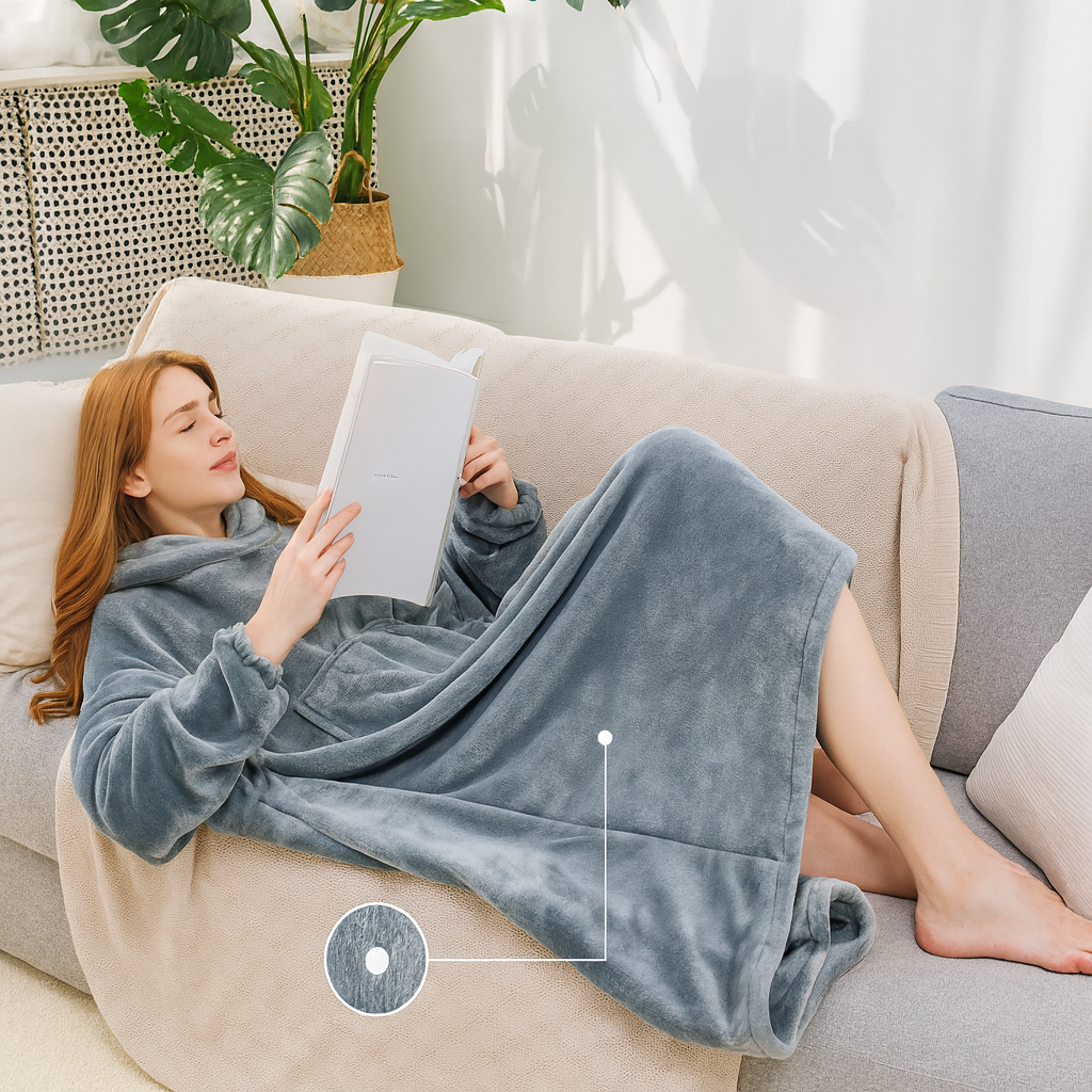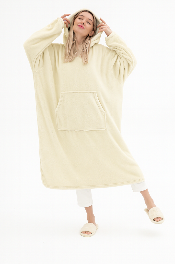 Détendez-vous avec ce plaid à capuche oversize, conçu pour vous offrir une sensation de confort et de chaleur lors de vos soirées fraîches. Profitez de moments douillets à la maison tout en restant élégant.