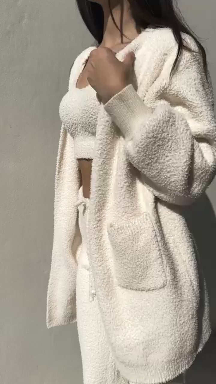 Découvrez ce pyjama long 3 pièces, conçu pour vous offrir une sensation de confort ultime tout en ajoutant une touche de style à vos soirées. Profitez de moments détendus à la maison, tout en étant élégant.